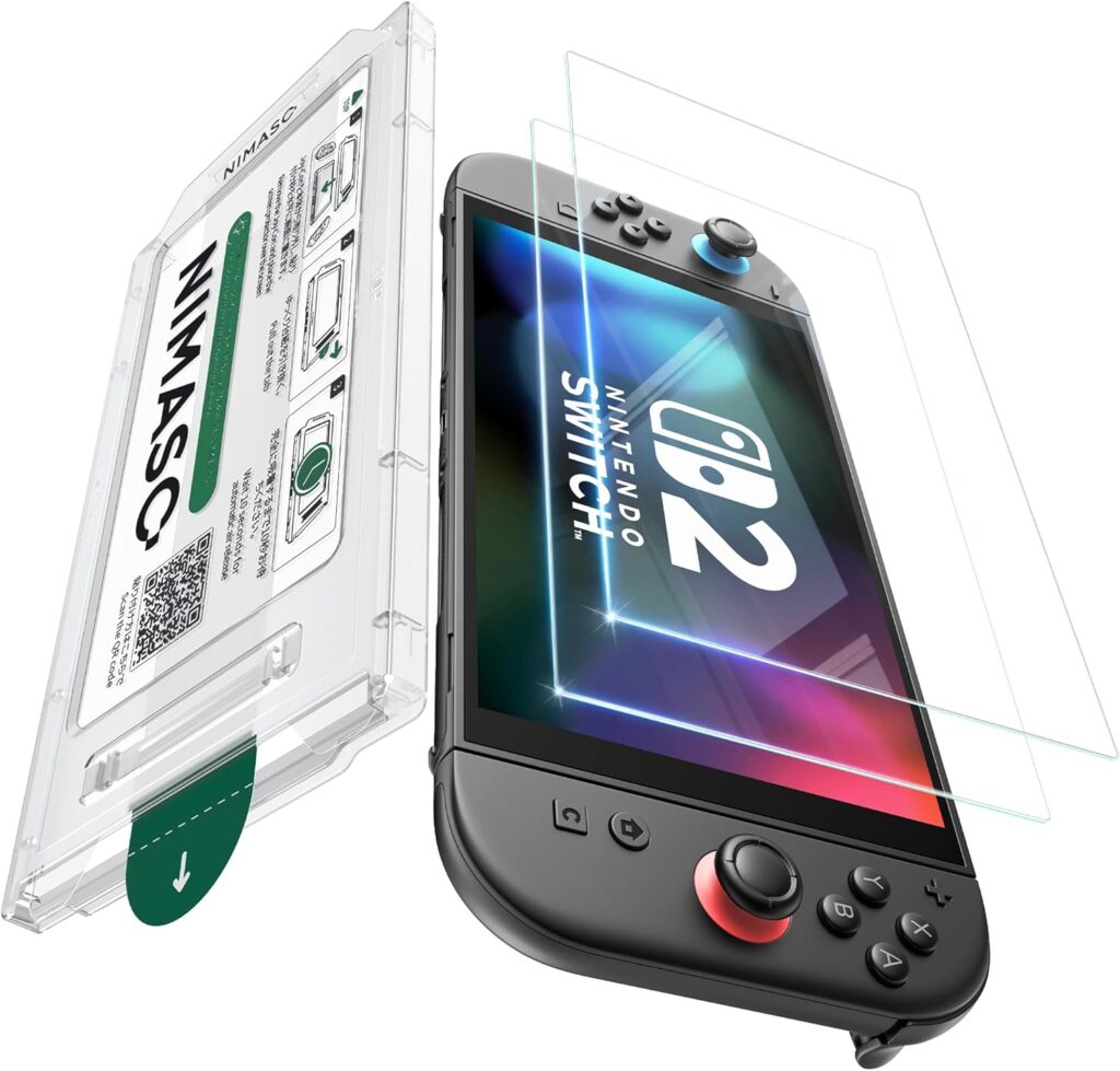 NIMASO 保護フィルム Nintendo Switch 2」はコスパと安心感のバランスが高いスイッチ2用画面割れ防止強化ガラスです。