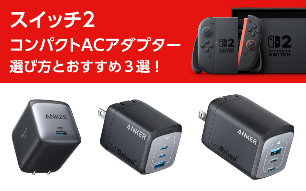 そこで、スイッチ2のコンパクトACアダプターの選び方とおすすめ3選を解説します。